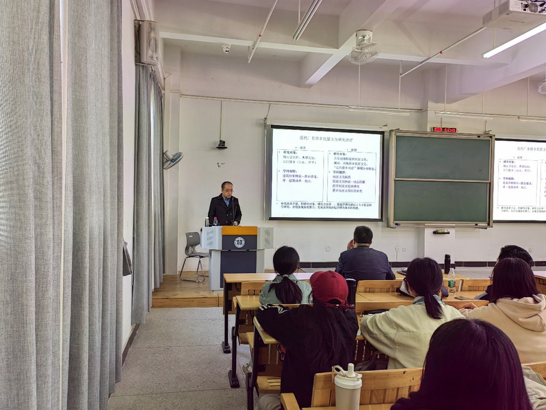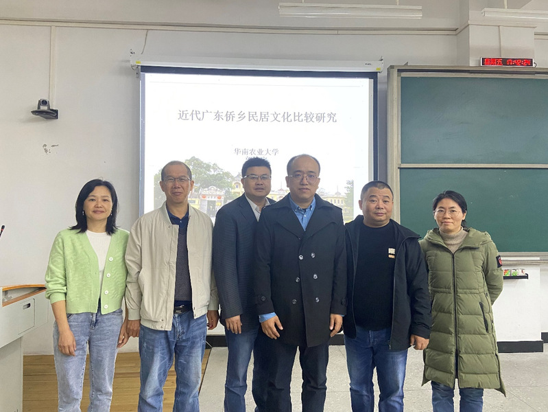 在大量调研分析的基础上,郭焕宇教授从物态文化、制度文化、精神文化三个层面对近代广东侨乡民居的分布与建设、格局与功能、形态与审美进行阐释,还结合惠州市惠阳区秋长街道周田村,探讨了侨乡红色文化村落红色史迹的保护利用。讲座期间,与会师生共同就相关学术问题进行了深入交流。杨星星副院长还鼓励同学们培养学术研究兴趣,为未来深造和就业筑牢基础。