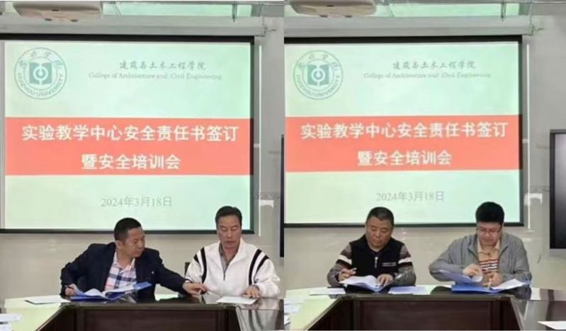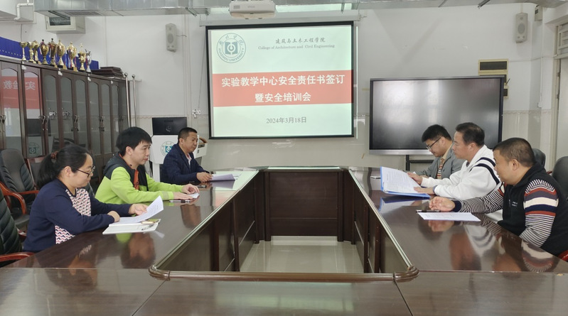 为加强实验教学中心安全管理工作,保障实验教学、科研工作顺利进行,3月18日上午,建筑与土木工程学院在学院会议室召开了实验教学中心安全责任书签订暨安全培训会。学院党总支书记郑良才、院长蔡仕谦出席会议并讲话,代表学院党政负责人与实验教学中心老师签订安全责任书,会议由副院长杨星星主持。