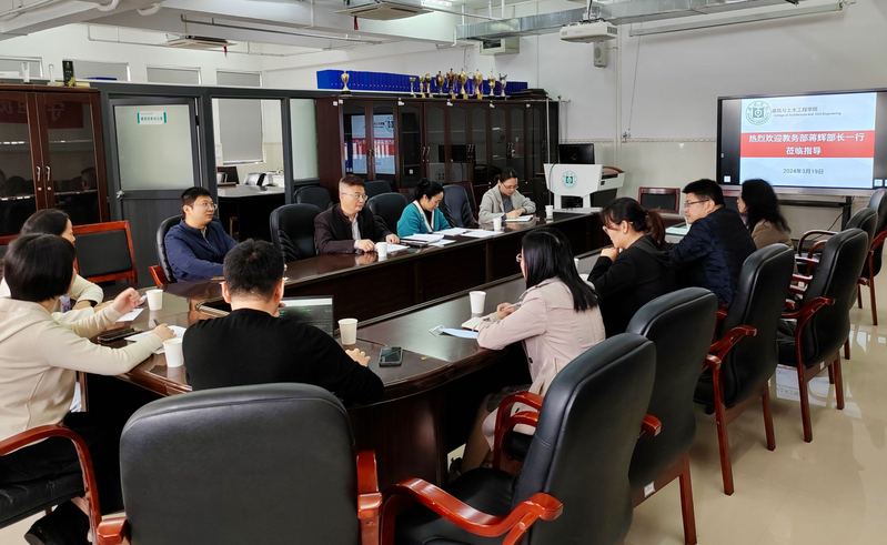 为深入了解各二级教学单位在专业建设、课程建设、产业学院、教育教学成果奖申报等各方面的进展情况,2024年3月19日上午,教务部部长蒋辉,副部长张璇、罗浩,实践课科长郑蒙,科员苏季然一行深入建筑与土木工程学院,以座谈交流的方式开展调查研究,指导工作,听取意见和建议。
