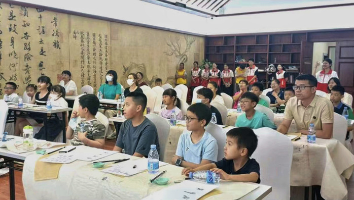 活动中,青志联建筑与土木工程学院分会的成员们利用图片、视频等多种形式,深入浅出地对平遥古城与书法进行了讲解,不仅将古城的历史脉络与建筑特色生动展现,还巧妙地将二者联系起来,指出中国古建筑与书法作为中国传统文化的瑰宝,二者的艺术理念彼此相通,都注重空间和结构的布局,以保证整体的平衡与美感,激发了孩子们的学习兴趣。学院分会成员、来自校邹鲁书法协会的胡乙风带领孩子们了解书法的基本知识,并通过游戏环节和现场示范,让孩子们亲身感受书法的独特魅力。书法实践结束后,在志愿者们的协助下,孩子们学习拼搭建筑模型,并将书法作品与建筑模型相融合,创造出独属于孩子们的建筑模型。活动后,孩子们手捧自己的作品,脸上洋溢着自豪与喜悦的笑容,纷纷合影留念。