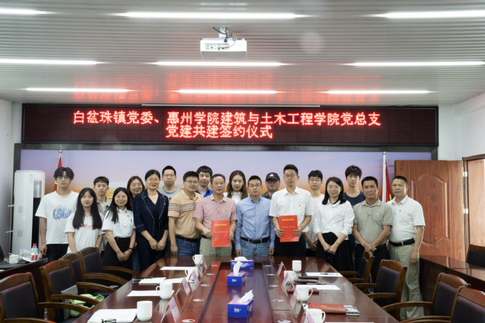 为加力提速实施好“百千万工程”,4月12日,建筑与土木工程学院(以下简称建土学院)“双百行动”先锋队队长党总支书记郑良才、院长蔡仕谦,在惠东县“百千万工程”指挥部办公室副主任兼“双百行动”驻惠东工作服务队队长陈秋锋的引导下,率领学院“双百行动”惠东县城乡规划建设项目突击队队长梁东瑶、教师党支部书记赵熙、学生第二党支部书记白玉珠和学院教师曾辉鹏、陈文一以及部分党团学生代表,前往惠东县白盆珠镇开展党建共建签约仪式。仪式由学院党总支副书记卢霏霏主持。