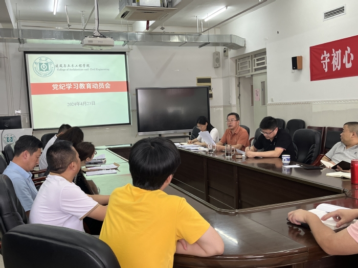 为学习贯彻习近平总书记关于党纪学习教育的重要讲话和重要指示精神,全面落实学校党委关于党纪学习教育的相关部署,4月23日,建筑与土木工程学院在旭日科技大楼1701会议室召开了党纪学习教育动员会,全院教工党员和学生党员代表参加了此次会议。