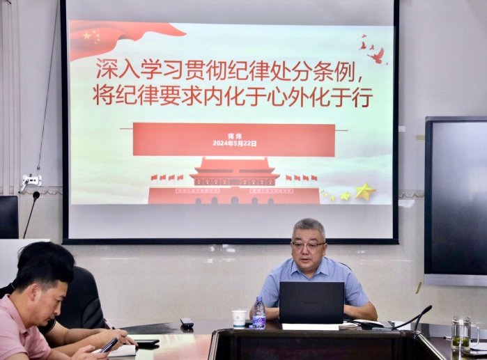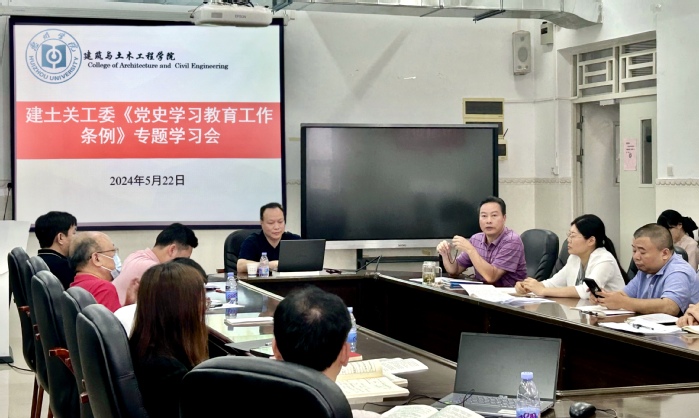 为扎实推进党纪学习教育,5月22日,建筑与土木工程学院(以下简称“建土学院”)于旭日科技大楼B座1701室召开了党纪学习教育专题会议,邀请政法学院院长蒋炜教授和总务后勤部部长李金利两位校纪委委员作新版《中国共产党纪律处分条例》(以下简称《条例》)学习辅导讲座,全院教工党员参加了本次会议。会议由党委书记郑良才主持。