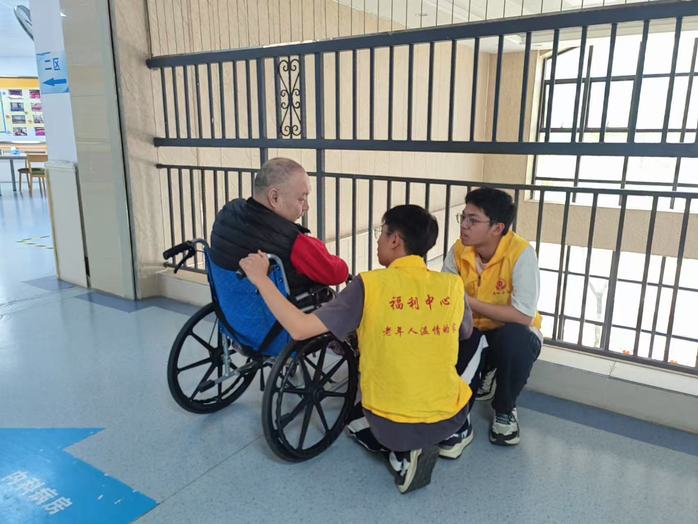 清晨,阳光明媚,团员们身着统一的服装,佩戴团徽,带着满满的热情抵达敬老院。班级被分成几个不同小组,负责不同的楼层与老人交流,团员青年们有些会搀扶他们到庭院晒太阳,倾听他们的故事。一位曾参与抗美援朝的老兵激动地展示勋章,向团员们讲述战火纷飞的岁月;一位退休教师则兴致勃勃地教大家写毛笔字,一笔一划间传递着文化传承的温度。一位老音乐家给我们展示了美妙的歌喉。
