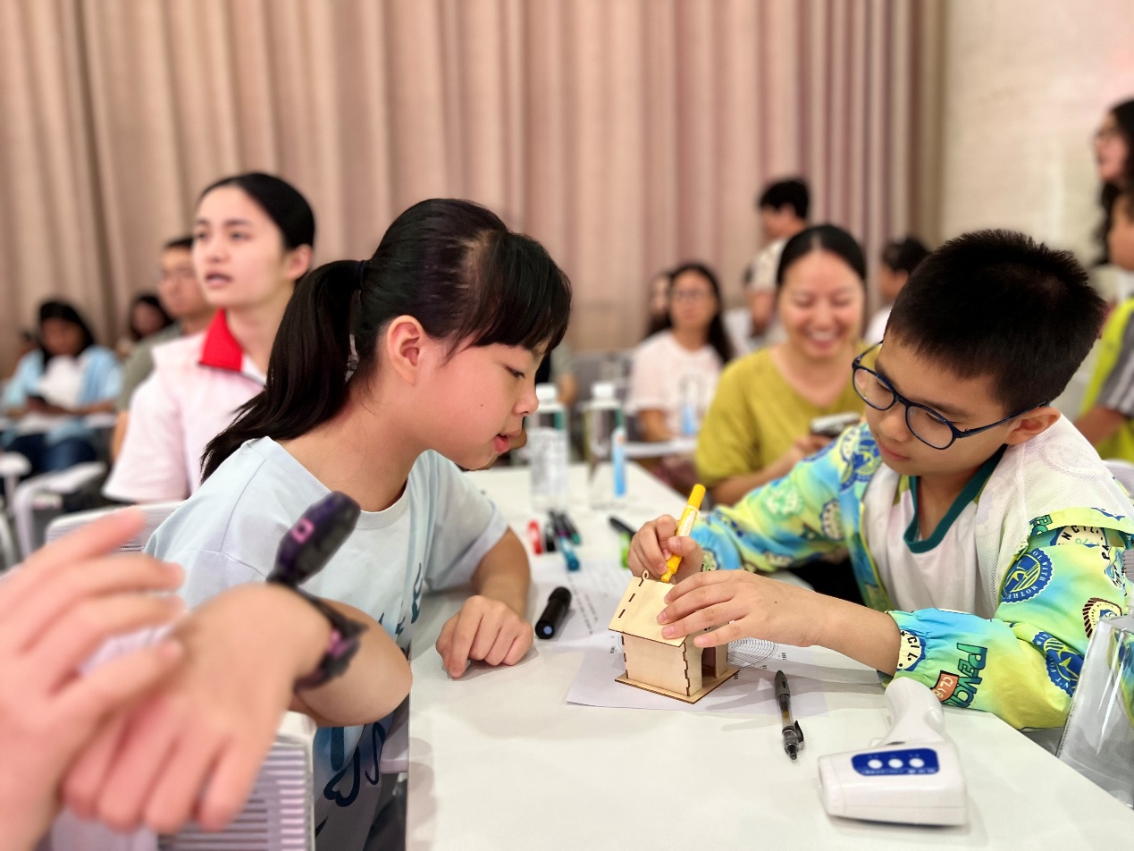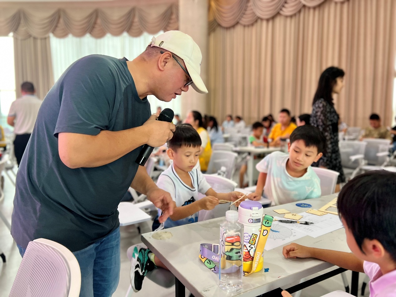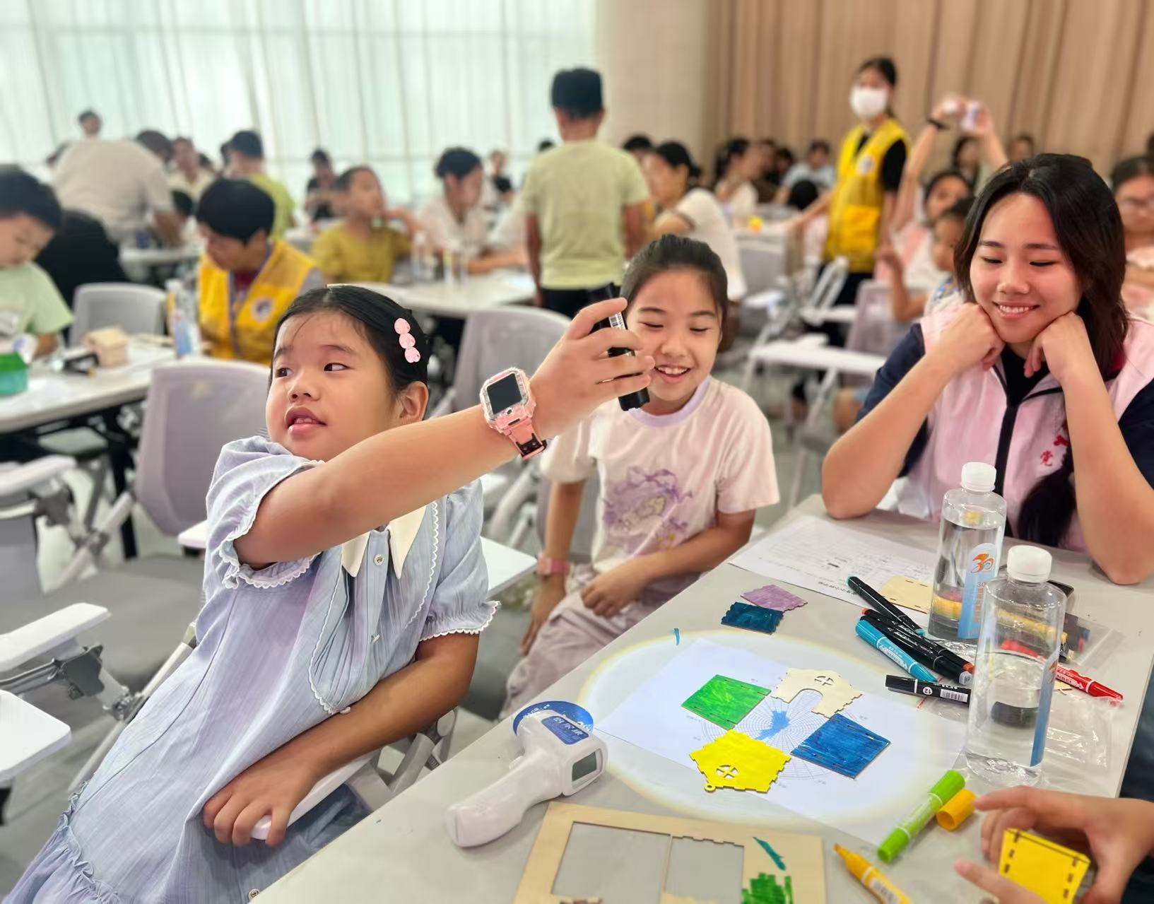 在随后进行的“小小建筑师模型工坊”和“色彩与温度”实验环节,我院学生党员积极发挥作用,不仅协助维护现场秩序,更分组指导小朋友完成手工制作与实验操作,将专业所学转化为实践服务,展现出良好的专业素养和志愿服务精神,赢得了主办方与家长们的广泛好评。