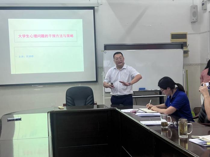 何资桥老师是我校心理健康教育领域资深专家,他以“提升心理育人能力,确保安全底线”为题,从心理危机识别、课堂教学中的心理引导技巧、四级预警防控机制落地路径等三个方面,系统介绍了高校心理育人的实践策略。他特别强调,心理育人是保障学生安全成长的关键环节,而日常关心、关爱学生才是建立良好师生关系、产生育人成效的关键,后续将配合学院开展专题培训,织密学生心理健康“防护网”。