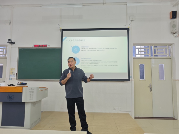 土木工程专业分享会同期举行。校友陈伟良、林海棠围绕专业学习、就业背景、行业趋势等方面展开交流,结合自身多年从业经验,强调扎实专业知识的重要性,并鼓励同学们“多实践、攒经验”——通过实习实践深入工程一线,在真实场景中加强理解、积累经验,提前适配行业需求。