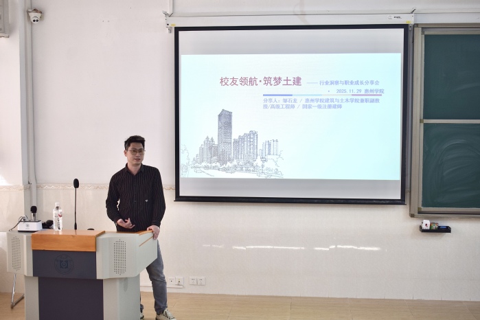 11月29日,建筑与土木工程学院举办“校友领航・筑梦土建——行业洞察与职业成长分享会”,建筑学、风景园林与土木工程专业分别邀请多位行业优秀校友返校,旨在搭建“专业+职业”的交流平台,帮助2025级各专业学生明确发展方向、提升专业认知。会议由副院长杨星星主持。